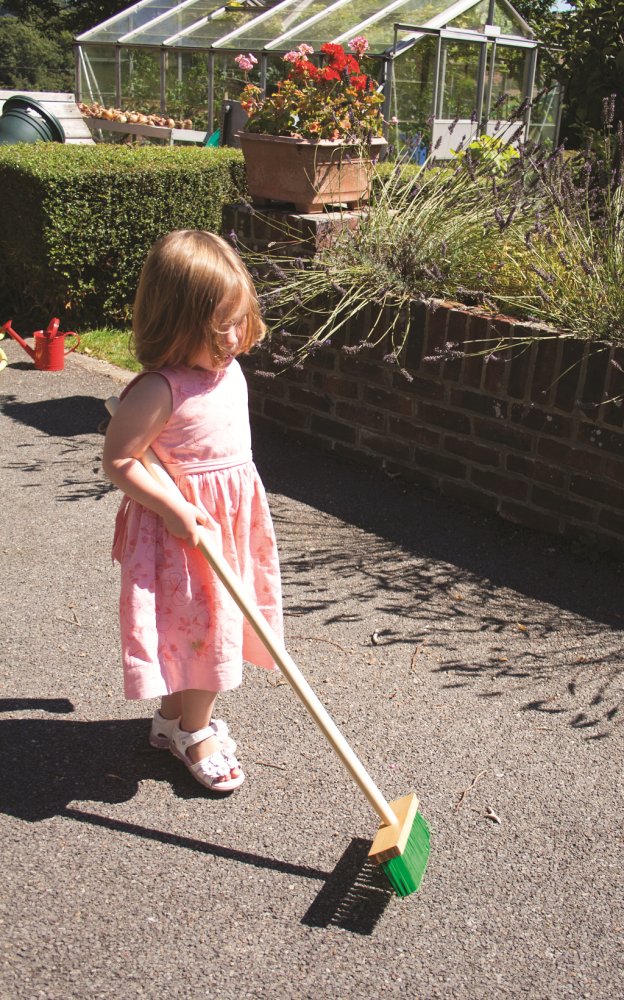 A zöld színű, hosszú nyelű kerti seprű jó segítőtárs a kis segítők számára. A mi kerti seprűnk tökéletes a levelek és a szennyeződések söprésére, miközben anyával és apával dolgozol a kertben. A robusztus, gyermekméretű fa fogantyúval ideális kerti szerszám gyerekeknek. Főbb jellemzők: ideális méret gyerekeknekfejleszti a motoros készségeket, az egyensúlyt és a természethez való viszonyt