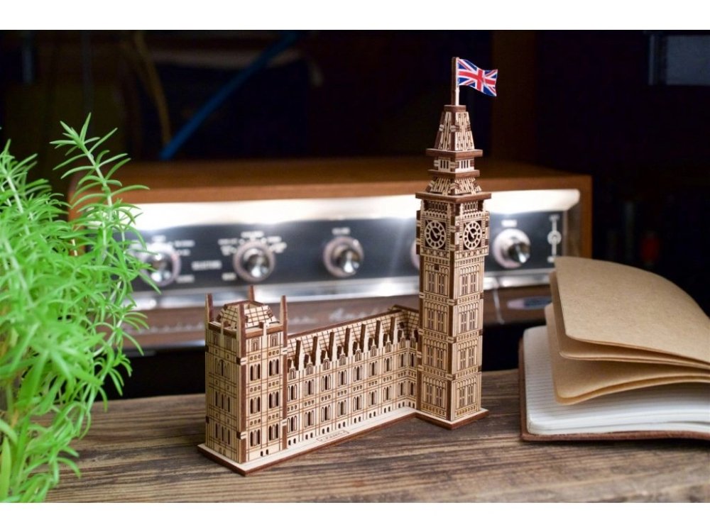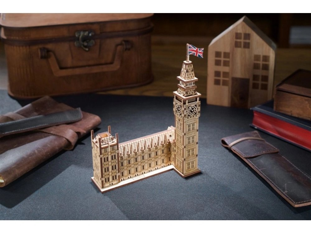 A londoni Big Ben a Westminster-palota északi végén található óratoronyban elhelyezett Nagy Harang beceneve, bár ezt a nevet általában az órára és magára az óratoronyra is használják. Az óratorony 1859-ben készült el neogótikus stílusban, 316 láb magas. Befejezésekor az órája a világ legnagyobb és legpontosabb négyoldalú órája volt. A UGEARS 3D mechanikus Big Ben puzzle ideális ajándék minden modellező számára, kicsiktől a nagyokig, akik értékelik a rendkívül részletes kidolgozást. Ráadásul az összeszerelés során senkinek sem kell ragasztótól összekennie az ujjait, mivel a teljes modell tisztán, saját kézzel, bármilyen szerszám használata nélkül összeállítható. Csak ki kell nyomni az alkatrészeket, amelyeket precízen, lézerrel vágtak ki fából, és össze kell pattintani őket. Az összeszerelési útmutató a csomagolásban található. A kész modell megszólítja az óratornyok vagy az angol építészet szerelmeseit, vagy azokat, akik Londonba való utazásról álmodoznak. Főbb jellemzők: 63 precízen vágott alkatrészkönnyű összeszerelési nehézségaz összeszerelési idő kb. 60 percfejleszti a finommotorikát és a képzelőerőt