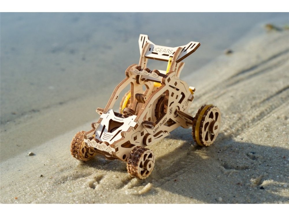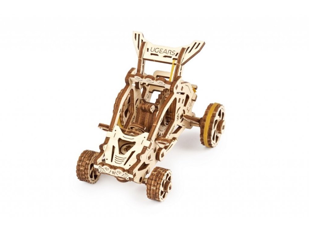 Aki szeretne szórakozni a dűnékben. Rétegelt lemezből készült homokfutó építőkészlet. Nem győzi le Önt a nehézségével, a fiatalabbak is bevonhatók az összeszerelésbe felügyelet mellett. A modell mechanikája felkelti a kíváncsiságukat. Az autó irányítható, és a felhúzható mechanizmusnak köszönhetően képes haladni. A hátsó kerekek gumírozása megbízható kapcsolatot biztosít a pálya felületével. Szervezzen versenyeket más UGEARS modellekkel! Részletes összeszerelési útmutatóval ellátva. Főbb jellemzők: 80 precízen kivágott darabalacsony összeszerelési nehézséga végső modell irányítható és képes önálló haladásraUkrajnában tervezték és gyártották