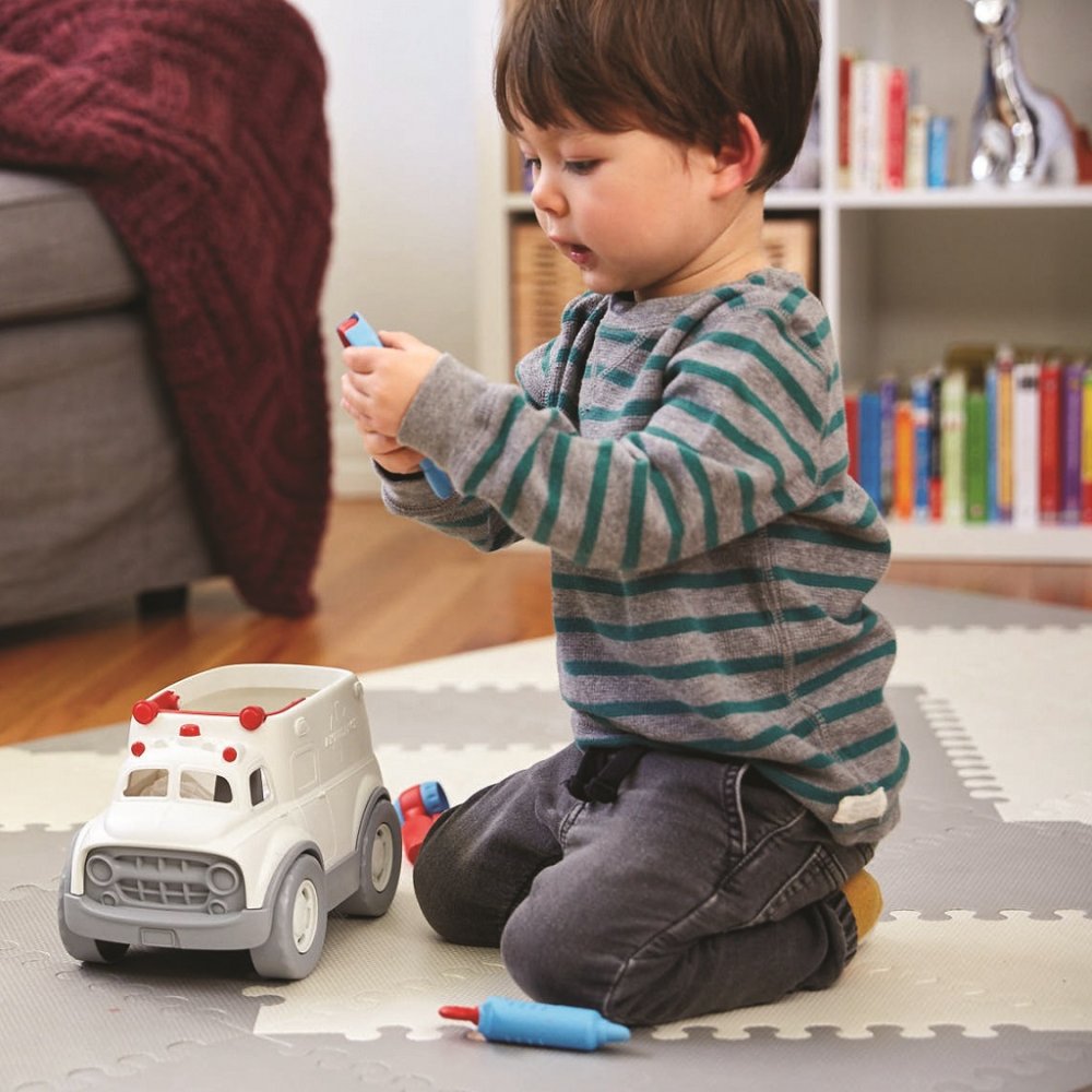 Ez a gyönyörű mentőautó és orvosi felszerelés készlet a Green Toys-tól mindent tartalmaz, amire a fiatal orvosoknak szükségük van. Ezzel a játékkal egyszerűen meggyógyíthatják az összes beteg mackót és babát! Az USA-ban, 100%-ban újrahasznosított műanyagból készült játék ideális azok számára is, akik törődnek a környezetvédelemmel. Érjen el a betegekhez gyors mentővel, és kezelje őket hat eszköz segítségével, ne feledkezzen meg a betegkártyáról sem, amelyre felírhatja a diagnózist. Ez a játék támogatja a gyermekeket a kreatív és fantáziadús szerepjátékban, segít megérteni az orvosnál zajló folyamatot, ami jól fog jönni a saját látogatásaik során. Fejleszti a szociális és nyelvi készségeket is, a gyerekek beszélgetni fognak a betegeikkel az egészségükről. Megtanulják, hogyan törődjenek másokkal, és fejlesztik az empátiájukat. A játék biztonságos, nem mérgező, nem tartalmaz BPA-t, PVC-t, ftalátokat és külső bevonatot. Ha műanyag játékokat keres homokozóba vagy vízbe, és nagyon fontos gyermeke biztonsága, nézze meg az amerikai Green Toys márka termékeit. Ökológiai játékokat gyárt, amelyek nemcsak az USA-ban népszerűek, hanem a cég termékeivel világszerte hihetetlen sikereket arat. A Green Toys elsősorban a játékok felelős gyártása újrahasznosított műanyagból, tejes palackokból. Főbb jellemzők: orvosi felszerelés és mentőautóbetegkártya, sztetoszkóp, hőmérő, otoszkóp és egyéb100%-ban újrahasznosított műanyagból készültnem tartalmaz PVC-t, biszfenolt és ftalátokat