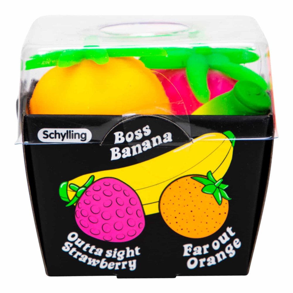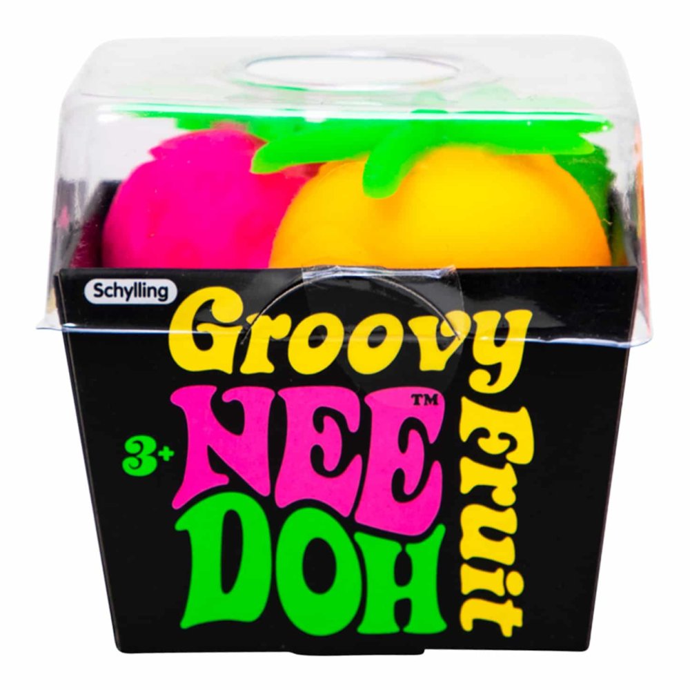 A Schylling's Groovy Fruit NeeDoh tele van gyümölcsös szórakozással. Ez az egyedi stresszoldó és izgő-mozgó játék banánt, epret és narancsot tartalmaz, amelyeket lehet nyomkodni, húzni és tépni. Ideális szórakozáshoz útközben, vagy a szorongás enyhítésére. A Nee Doh nem mérgező, tésztaszerű anyagból készült, amely mindig visszanyeri eredeti formáját. Lehet nyomkodni, húzni és összetörni. Ideális szórakozáshoz útközben, vagy a szorongás enyhítésére. A Groovy Fruit segít a gyerekeknek koncentrálni és fenntartani a figyelmet. A NeeDoh termékek külső anyaga hőre lágyuló gumi, a belső töltelék polivinil-alkohol, mindkét anyag nem mérgező. A töltelék PVA, amelyet gyógyszerészeti készítményekben és étrend-kiegészítőkben is használnak bevonatként. Főbb jellemzők: alkalmas ADD-vel, ADHD-val, OCD-vel, autizmussal és szorongással küzdő személyek számárastresszoldó labda és játék iselősegíti a koncentrációt és a figyelmetnem mérgező anyagból készültIdeális utazáshoz