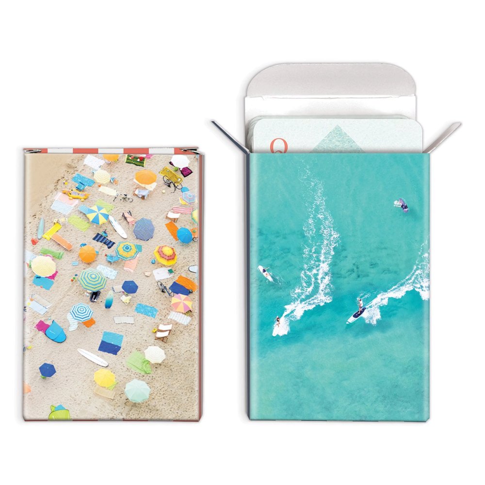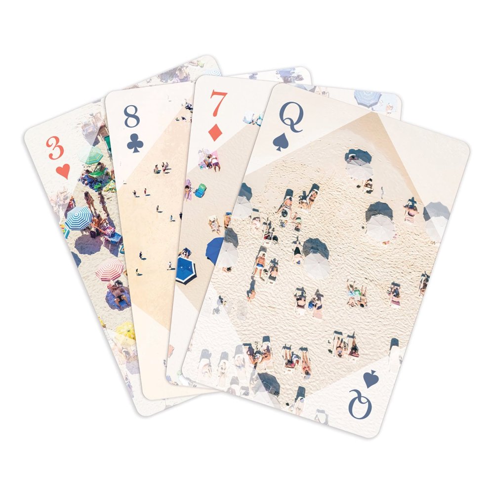 Eredeti kanaszta (zsóker) játékkártya készlet luxus kartondobozban. A kártyákat és a csomagolásukat művészi, légi felvételek díszítik a strandról, amelyek elragadó légkört kölcsönöznek a játékhoz a nyári kikapcsolódás és a napfény jegyében. Főbb jellemzők: 2 csomag, összesen 108 kártyaművészi fotók, szerző: Gray Malinpraktikus és luxus csomagolás