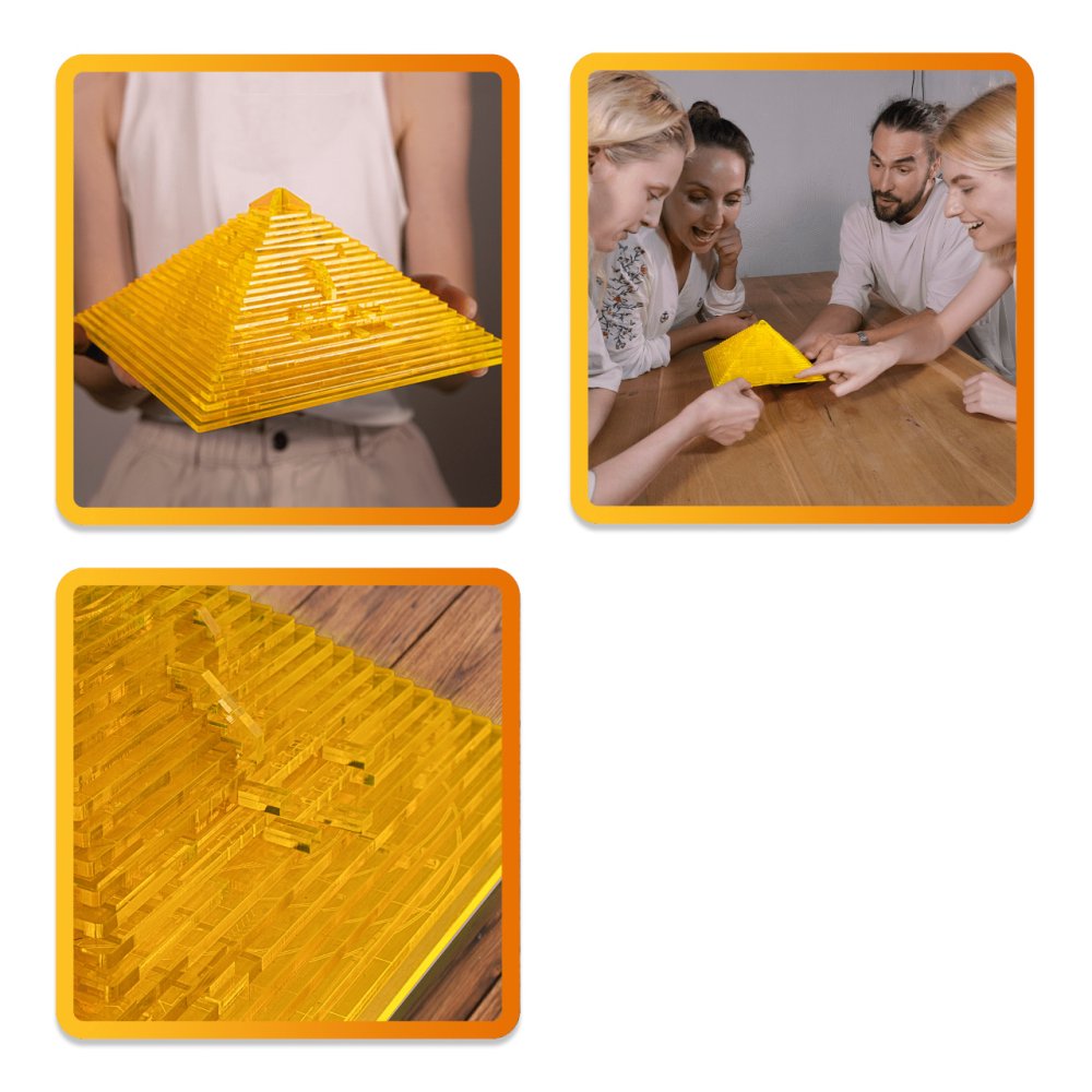 Évezredekig egyiptomi tudósok és papok őrizték a tudás kincstárát, a valódi hatalom forrását. Mélyen elrejtőztek egy ősi piramisban, tele mágikus csapdákkal és rejtvényekkel, hogy elriasszák a hívatlan vendégeket, és megőrizzék a titkot a beavatatlanok elől. Sem a fáraók, sem a perzsa birodalom legnagyobb tudósai nem tudtak behatolni és feltárni az egyiptomiak szent bölcsességét. Van bátorságod leküzdeni az ókori építészek minden csapdáját, és megszerezni az elveszett tudást? Használja ki ezt az egyedülálló lehetőséget, és induljon izgalmas kalandra, fejtse meg a piramis rejtélyét, és szerezze meg a kincseket a tudás csarnokából! ∗★∗ Escapewelt fejtörők mostantól luxus kivitelben, átlátszó, színes akrilból! A kiváló minőségű és tartós anyag a kidolgozott puzzle-t egyedi és ragyogó ékszerré varázsolja. Tapasztalja meg a szabadulószobák hangulatát eredeti forgatókönyvekkel és rejtvényekkel otthonában! Minden fejtörő egy kis rekeszt rejt, amelyet kreatívan felhasználhat egy nyom tárolására a saját kalandos játékában, vagy feldobhatja az élményt egy apró ajándékkal. Minden csomag tartalmaz egy egyszerű képes útmutatót, amely egy QR-kódot is tartalmaz, amely a súgóoldalra vezet. A rejtvénynek mindig egy megoldása van, a minőségi kivitelezés azonban alkalmassá teszi a további felhasználásra, ezért ne habozzon megajándékozni vele barátait vagy családtagjait. Főbb jellemzők:luxus kivitel átlátszó akrilbóla belső rekesz méretei 5×5×5 cmmagas nehézségi fokEU-ban gyártott