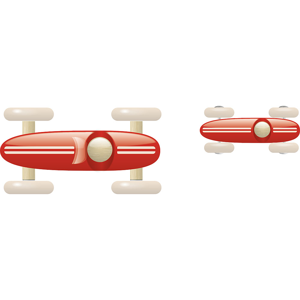 Piros vintage autómodell a Grand Prix versenyből. Lakkozott fából készült Franciaországban. Nagy, fehér gumikerekei vannak, amelyek biztosítják a csendes működést minden padlón.  Főbb jellemzők:  Franciaországban készült