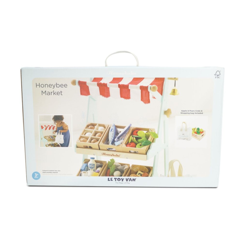 Az értékesítő pult a Le Toy Van termékek kedvence, így nem meglepő, hogy számos díjat nyert. Ügyes tervezők tervezték a mindennapi szórakoztató szerepjátékhoz. Nem hiányzik a bevásárlótáska, valamint egy alma- és körtedoboz sem. A polcokra további élelmiszeres ládák is elhelyezhetők a Le Toy Van kínálatából. Felülről egy szép baldachin, oldalról pedig egy csengő, amellyel a vásárlók felhívhatják az értékesítők figyelmét. A játék segíti a gyermekeket a szociális készségek és a beszéd fejlesztésében, valamint megtanulják a türelmet is. Játékok céllalA Le Toy Van cég összes játéka azzal a céllal készül, hogy sokáig kitartson. Szeretettel tervezték tapasztalt kézművesek etikus gyakorlatok és fenntartható anyagok felhasználásával, amelyek kíméletesebbek bolygónkhoz. Főbb jellemzők: etikusan, fenntartható FSC fából készülta legszigorúbb szabványok szerint tesztelvevízbázisú, nem toxikus festékekkel festvea képzeletbeli játékra ösztönözfejleszti a kognitív készségeket A játék díjai:Grand Prix De La Presse Award 2012 Honeybake kollekció: Az ebben a kollekcióban található játékok alkalmasak a felfedezésre, segítik a gyermekek képzelőerejének fejlesztését. A hagyományos dizájn a modern részletekkel biztosan szórakoztatja a gyerekeket. A Honeybake a Le Toy Van kollekciója, amely a legtöbb díjat nyerte el a dizájnért, a minőségért, a biztonságért, valamint az oktatási és játékértékért.