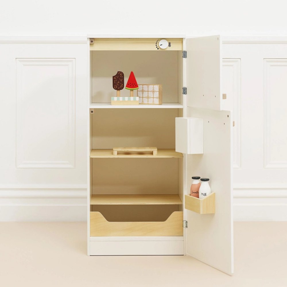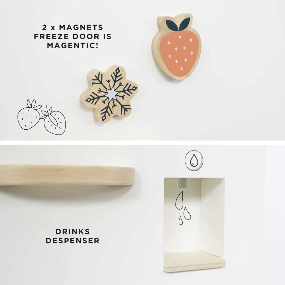 Dobja fel konyháját ezzel a csodálatos, szabadon álló hűtőszekrénnyel és fagyasztóval! A tartós játék vonzó retro dizájnnal rendelkezik, és tele van interaktív funkciókkal a nagyobb szórakozás és a fantáziadúsabb szerepjáték érdekében. Fedezze fel a beépített vízadagolót, a hőmérséklet-szabályozást, valamint a gyümölcs- és zöldségrekeszeket. A komplett készlet számos tartozékot is tartalmaz, köztük 2 jégkrémet, állványt, tojás- és jégtartót, valamint tejet vagy smoothie-t tartalmazó üveget. A hűtőszekrény ajtaja mágneses, emellett két praktikus, díszes mágnes is tartozik hozzá. A hűtőszekrény kompatibilis a nagy Le Toy Van konyhával (TV347 kód). A készlet FSC® tanúsítvánnyal rendelkező fából (fenntartható módon kezelt erdőkből származó fa) készült, és gyermekek számára biztonságos, vízbázisú festékekkel díszített. Játékok céllalA Le Toy Van cég összes játéka azzal a céllal készül, hogy sokáig kitartson. Szeretettel tervezték tapasztalt kézművesek etikus gyakorlatok és fenntartható anyagok felhasználásával, amelyek kíméletesebbek bolygónkhoz. Főbb jellemzők: etikusan, FSC-tanúsítvánnyal rendelkező, fenntartható fából készültvízbázisú, nem toxikus festékekkel festvea legszigorúbb szabványok szerint tesztelvehűtőszekrényt fagyasztóval, 2 mágnest, jégkockatartót, tojástartót, 2 jégkrémet, 2 üveget, vízadagolót tartalmazötletes játékra ösztönöz A FSC® (Forest Stewardship Council) védjegy és tanúsítvány garantálja, hogy a fa, amelyből a termék készült, nem illegális kitermelésből származik, hanem olyan erdőkből, amelyeket gondos és természetközeli módon művelnek, szigorú környezetvédelmi és társadalmi követelmények betartásával. Az FSC® védjegy a terméken azt jelenti, hogy vásárlásával segít megvédeni az erdőket, és támogatja a fenntartható, felelős vagy természetközeli gazdálkodást, aminek köszönhetően erdeink stabilabbak, egészségesebbek, természetes fajösszetételűek és jobban ellenállnak az éghajlatváltozás negatív hatásainak.