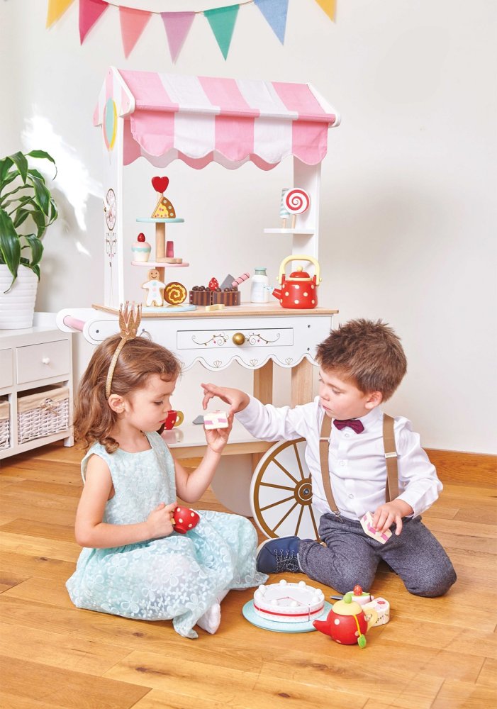 Itt az ideje egy kis teának! Ez a teáskocsi első pillantásra lenyűgöző. Gyönyörű vintage dizájnnal, színes baldachinnal és aranyos részletekkel rendelkezik. A kocsinak van egy titkos fiókja, amelyben a gyerekek tárolhatják a finomságok eladásából származó pénzt. Két kerék és egy fogantyú is tartozik hozzá a kocsi könnyű mozgatásához, valamint színes illusztrációk és egy krétatábla is. Nem mérgező, vízbázisú festékeket használtak. Természetes gumifából készült. Játékok céllalA Le Toy Van cég összes játéka azzal a céllal készül, hogy sokáig kitartson. Szeretettel tervezték tapasztalt kézművesek etikus gyakorlatok és fenntartható anyagok felhasználásával, amelyek kíméletesebbek bolygónkhoz. Főbb jellemzők: etikusan, fenntartható fából készülta legszigorúbb szabványok szerint tesztelvevízbázisú, nem toxikus festékekkel festvea képzeletbeli játékra ösztönözalkalmas szerepjátékraa játék díjat nyert A játék díjai:Good Toy Guide Recommended Honeybake kollekció: A kollekció játékai alkalmasak a felfedezésre, segítik a gyermekek képzelőerejének, szociális és verbális készségeinek, valamint kognitív funkcióinak fejlesztését. A hagyományos design a modern részletekkel biztosan le fogja kötni a gyerekeket. A Honeybake a Le Toy Van kollekciója, amely a legtöbb díjat nyerte el, a design, a minőség, a biztonság, valamint az oktatási és játékérték terén.