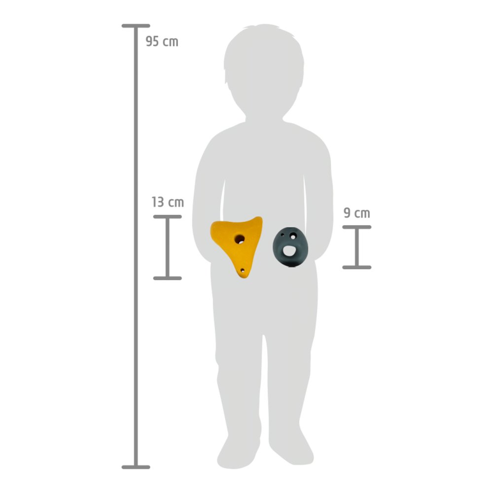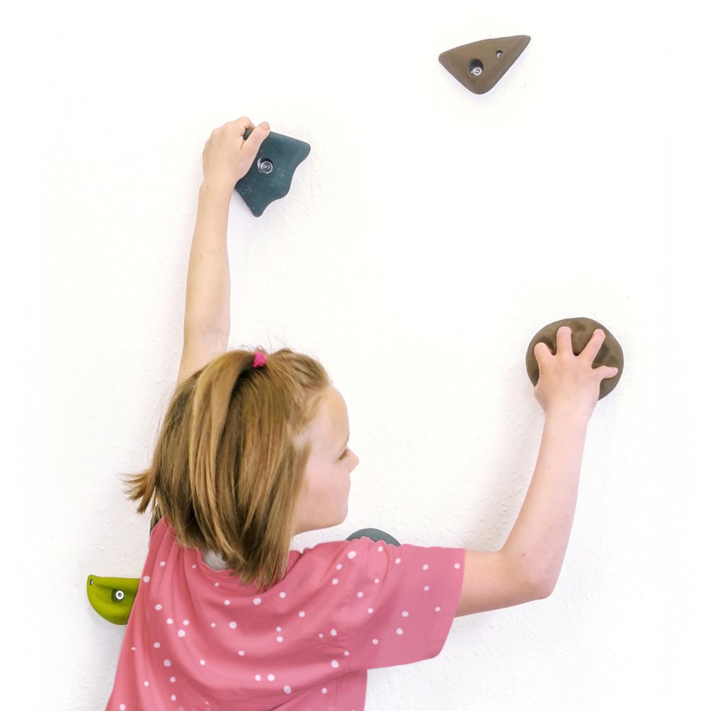 Fiatal hegymászók és hegymászónők figyelem! Ezzel a 10 különböző formájú fogással minden alkalommal más és egyedi útvonalat hozhatsz létre. A mászófogások a kétpontos rendszernek köszönhetően védettek a hirtelen elfordulás ellen. A csomag tartalmazza a szerelési tartozékokat is. A fogások mérete pont megfelelő a gyermekkezek számára, a strukturált felület pedig megkönnyíti a megfogást. A mászás segít a gyerekeknek az erő, az egyensúly, a bátorság és a kitartás fejlesztésében. Az Adventure termékcsalád többi termékével kombinálva saját tornatermet hozhatsz létre. Főbb jellemzők: robusztus, különböző formájú fogásokkétpontos szerelési rendszer – nincs hirtelen elfordulásszerelési tartozékok a csomagbanaz útvonalat a gyermek képességeihez igazíthatodkompatibilis az Adventure mászófallal és a termékcsalád többi termékével