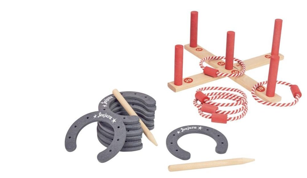 Hagyományos játék karikák és patkók keresztre dobásával, praktikus utazócsomagban. Franciaországban készült, tömör bükk- és fenyőfából, francia eredetű. Az alkatrészek kizárólag vízbázisú festékekkel és lakkokkal vannak kezelve. Főbb jellemzők:5 karika és kereszt, 8 patkó és 2 cövektömör fából készült alkatrészekpraktikus csomagolásFranciaországban készült