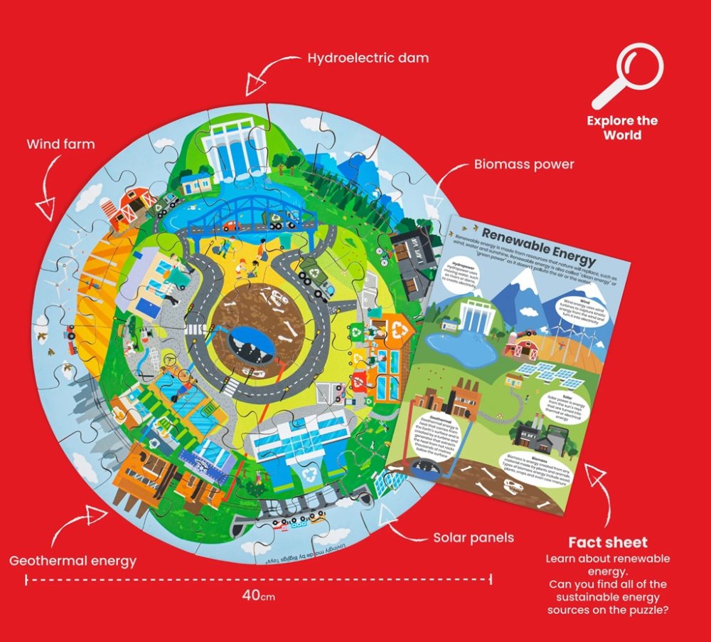Kerek puzzle újrahasznosítási témával. Megmutatja a gyerekeknek, mit jelent az újrahasznosítás, és mit tehetünk azért, hogy segítsünk a környezetünknek. Hároméves kortól építhetik a gyerekek. Eközben gyakorolják a koncentrációt, a fantáziát, és újat tanulnak az újrahasznosításról. Főbb jellemzők: 3 éves kortól alkalmasgyönyörű színes kivitelezésmegtanítja a gyerekeknek az újrahasznosítást