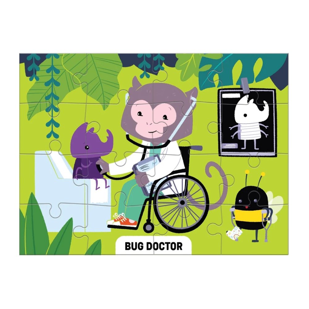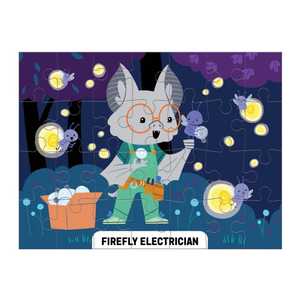 A csodálatos foglalkozások 4 az 1-ben készlet 4 rejtvényt tartalmaz, mindegyik más nehézségi szinttel. A 16, 20, 24 és 28 darabos puzzle-k mindegyike szórakoztató és kreatív munkákat tár fel, mint például a szentjánosbogár-villanyszerelő, a pizzaöntöző technikus, az elveszett zoknik nyomozója és a bogárdoktor. A puzzle erős dobozba van csomagolva, az újrafelhasználás és tárolás érdekében. Ideális ajándéknak. A képet Eloise Narrigan készítette. A puzzle-k jelentős mennyiségű újrahasznosított papír felhasználásával készülnek, és kiváló minőségű, ártalmatlan festékekkel nyomtatják. Matt felületkezeléssel vannak ellátva, amely minden körülmények között biztosítja a részletek és a színek hű visszaadását. Hátoldaluk sima, kellemes tapintású felülettel van bevonva, melynek köszönhetően a szétszedett puzzle tárolásakor nem képződik por. A gondosan becsomagolt darabok mellett a csomagban egy útmutató képet tartalmazó szórólapot is talál, amely általában további információkat tartalmaz az alkotókról és a mű keletkezésének hátteréről. Rendkívül erős és szemet gyönyörködtető kartondobozban szállítjuk, újrahasznosított kartonból. Főbb jellemzők: 16, 20, 24, 28 db precízen kivágott alkatrészújrahasznosított és fenntartható forrásból származó anyagok felhasználásával készültgondosan válogatott motívum neves alkotóktól és művészektőla legmagasabb minőségű nyomtatás és kivitelezésútmutató képet tartalmaz
