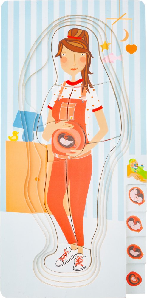 Ezzel a 4 rétegből álló, rétegzett kirakóval a gyerekek megismerhetik a terhesség folyamatát. Az első héttől a szülésig. A terhességről való tanuláson kívül a puzzle fejleszti a gyerekek koncentrációját és finommotorikáját. Felkészítheti őket a testvér érkezésére is. Minden réteg más-más illusztrációt tartalmaz a növekvő babával a pocakban. Főbb jellemzők: 4 réteget tartalmaz – 28 elemetfejleszti a motoros készségeket, a koncentrációt és a tudást