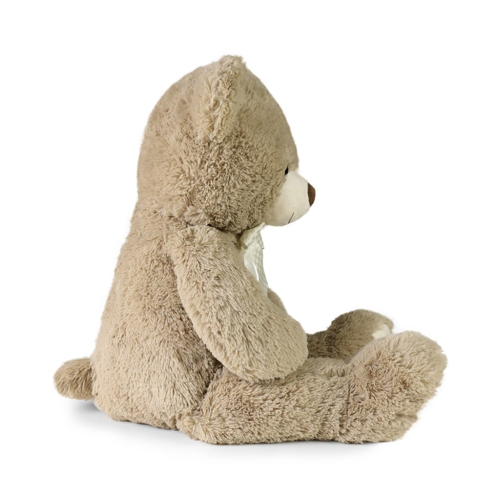 Egy plüssmackó semmiképpen sem hiányozhat egyetlen gyerekszobából sem! A 78 cm-es mackó minőségi, puha plüssből készült, kapucsínó színben, nyakát pedig krémesen fehér szatén masni díszíti. Tartalmaz egy papír címkét szív alakban, amire üzenetet írhatsz. Ez a plüss darab ideális ajándék kicsiknek és nagyoknak egyaránt!  Főbb jellemzők:  aranyos kisállatkézi feldolgozásszív alakú címkével