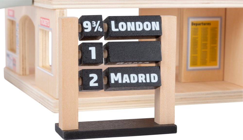 Kérem, fejezzék be a beszállást, az ajtók záródnak. A kétszintes vasútállomás 100% FSC fából készült, számos kiegészítővel rendelkezik, mint például üzlet, jegyautomata, célállomás kijelző (amire írhat), óra. A csomag természetesen vonatot is tartalmaz. Az állomás olyan, mint az igazi! A nyitott tetőnek köszönhetően rengeteg hely van a játékra. Egy másik nagyszerű dolog, hogy a mélyebb sínprofilnak köszönhetően akkumulátoros vonatok is közlekedhetnek rajta (nem tartozék). Ezzel a játékkal minden gyerekszoba egy nagyvárosi vasútállomássá változik! Főbb jellemzők: 100% FSC faállomás számos részlettel és funkciós elemmel Az FSC® (Forest Stewardship Council) védjegy és tanúsítvány garantálja, hogy a fa, amelyből a termék készült, nem illegális kitermelésből származik, hanem olyan erdőkből, amelyeket fenntartható vagy természetközeli módon művelnek, szigorú környezetvédelmi és társadalmi követelmények betartásával. Az FSC® védjegy a terméken azt jelenti, hogy vásárlásával segít megvédeni az erdőket, és támogatja a fenntartható, felelős vagy természetközeli gazdálkodást, amelynek köszönhetően erdeink stabilabbak, egészségesebbek, természetes fajösszetételűek és jobban ellenállnak az éghajlatváltozás negatív hatásainak.