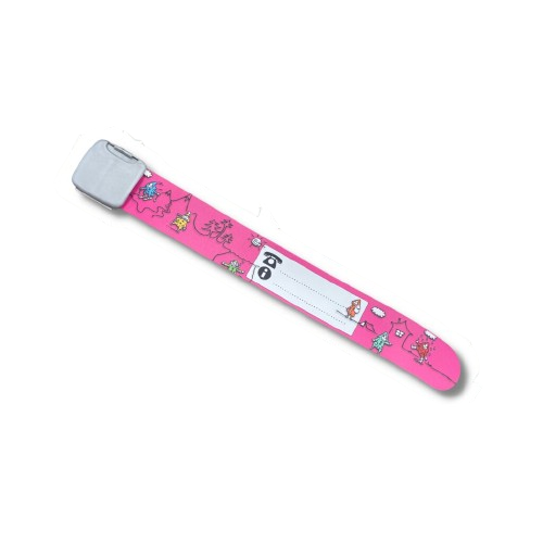 Golyóstollal vagy alkoholos filccel írja be a szükséges szöveget a fehér foltba. Ezután csak tegye a karkötőt a gyermeke karjára, és kész.