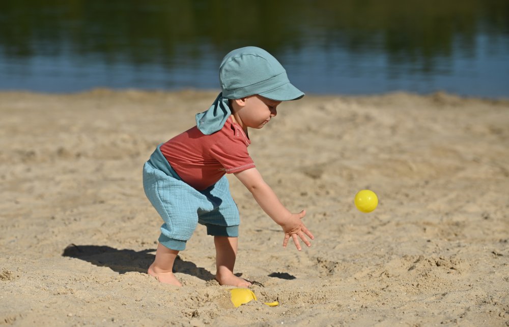 Az Outlast® anyag védi a fejet a túlmelegedéstől, a napellenző pedig árnyékot biztosít a szemeknek. A hátsó részen egy kendő van varrva, amely védi a nyakat és a hát egy részét. Ez a kiegészítő kiválóan alkalmas a forró nyári napokon a gyermek védelmére. UV-védő faktora 50+.