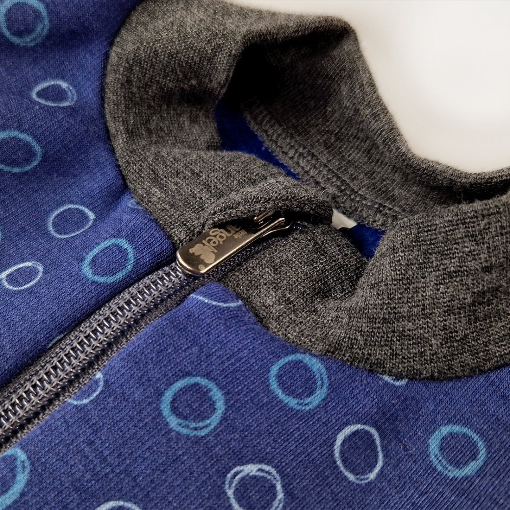 A kényelmes és stílusos, zsebes gyermek pulóver nagyszerű választás szabadidőhöz és városi sétákhoz. A pulóver elöl praktikus cipzárral záródik, a nyakánál pedig csinos állógallérral van ellátva. Becipzározás után a cipzár húzókáját elrejtheti egy speciális fedélbe, így elkerülheti az áll irritációját. A pulóver elején, a mellkas területén egy díszítő logó található, amely fényvisszaverő csillaggal rendelkezik a sötétben való jobb láthatóság érdekében. A pulóver ujjai széles mandzsettákkal vannak ellátva, amelyeket felhajthat és az ujjhosszt a gyermek aktuális méretéhez igazíthat. Ily módon a pulóver több mérethez is alkalmazkodik, így a gyermek hosszabb ideig viselheti.