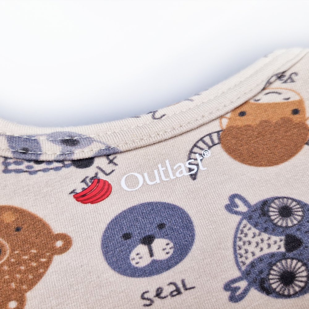 Ennek a body-nak az elkészítéséhez Outlast® anyagot használtak hurkolt változatban, amelynek a színoldala sima, a fonákoldala pedig hurkos. Az Outlast® anyag viselés közben képes szabályozni a testhőmérsékletet, elvezetni a felesleges hőt és megakadályozni az izzadást. Abban a pillanatban, amikor a testhőmérséklet csökken, az Outlast® anyag felszabadítja a felhalmozott hőt, és elkezdi felmelegíteni a testet. Az Outlast® anyagból készült ruházat hőszabályozó tulajdonságainak köszönhetően nagyon népszerű, mivel egész viselés alatt biztosítja a hőkomfortot. A hosszú ujjú body alkalmas őszi, téli és tavaszi hónapokra.
